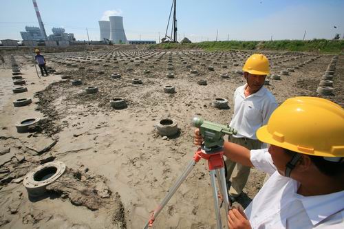 圖為第一標(biāo)段施工人員對(duì)8400顆基樁進(jìn)行標(biāo)高測(cè)量。
