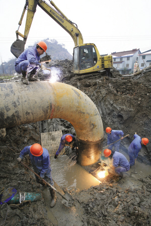 為緩解小舜江供水一期管線日益增加的運行壓力,公司利用冬季供水低谷期,于1月26日成功實施了對小舜江二期供水總管與柯橋泵站1#出廠管連通管兜口作業(yè)。